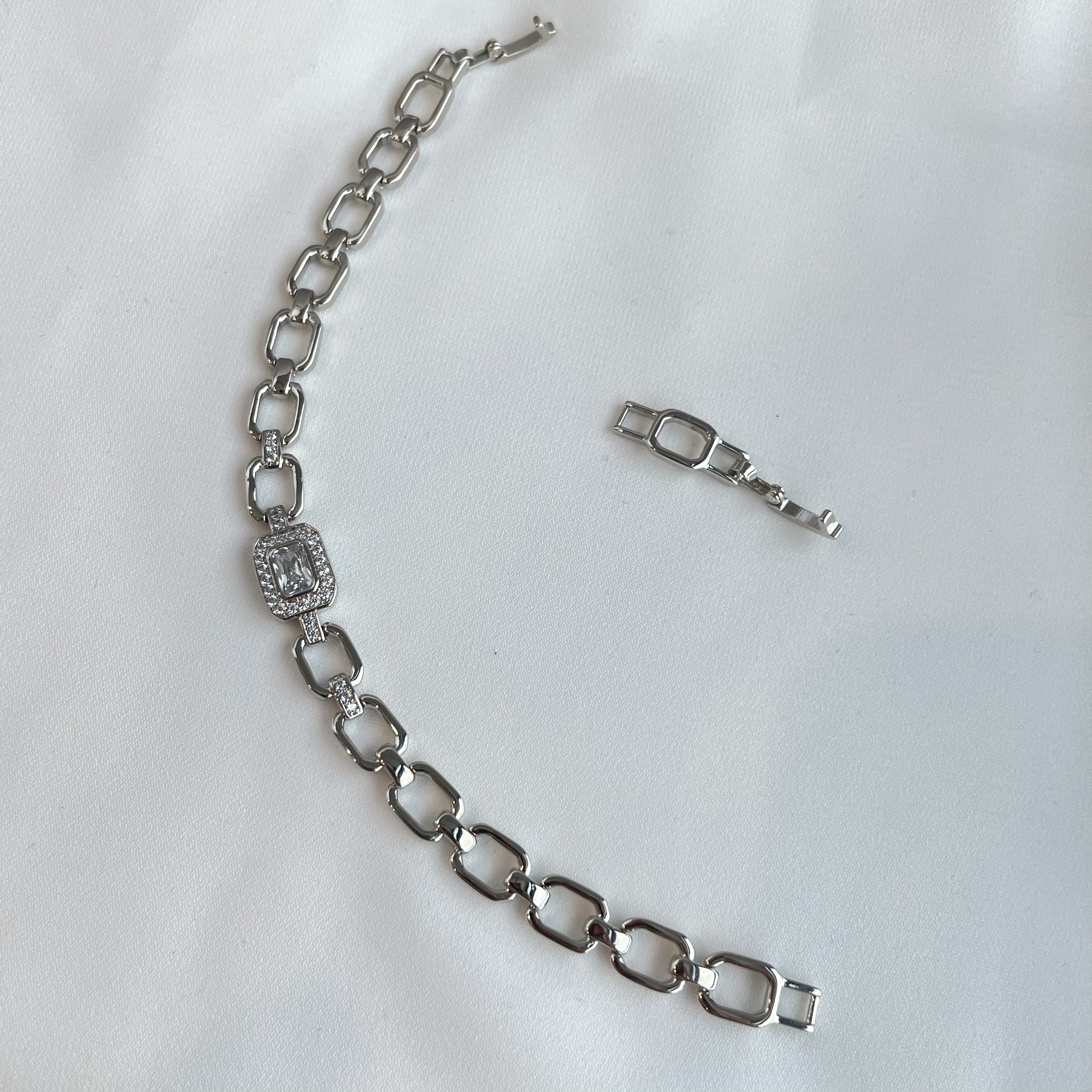 Uzunluğu 15 cm'dir. 2 cm uzatması bulunmaktadır.Antialerjiktir. Kullanım talimatlarına uyduğunuz sürece uzun süre kullanabilirsiniz. Tüm ürünlerimizde özel bir kaplama kullanılmaktadır ve sonuç olarak özel bir bakım gerektirir. Çizilmesini önlemek için, kutusunda veya klasik bir kesenin içinde saklayınız. Ellerinizi yıkamadan önce, yüzmeden önce ve parfümler, saç spreyleri, sabunlar veya losyonlar gibi vücut bakım ürünlerini kullanmadan önce aksesuarlarınızı çıkartınız, Bu işlemler hammaddeye zarar verebilir, kaplamanın ömrünü kısaltabilir ve parlaklık kaybına neden olabilir. Takılarınız tamamen giyindikten sonra takınız ve soyunmaya başlamadan önce çıkarınız. Su ile temasından kaçınınız. Sert darbelerden kaçınınız çünkü çizilmelere ve başka hasarlara neden olabilir.