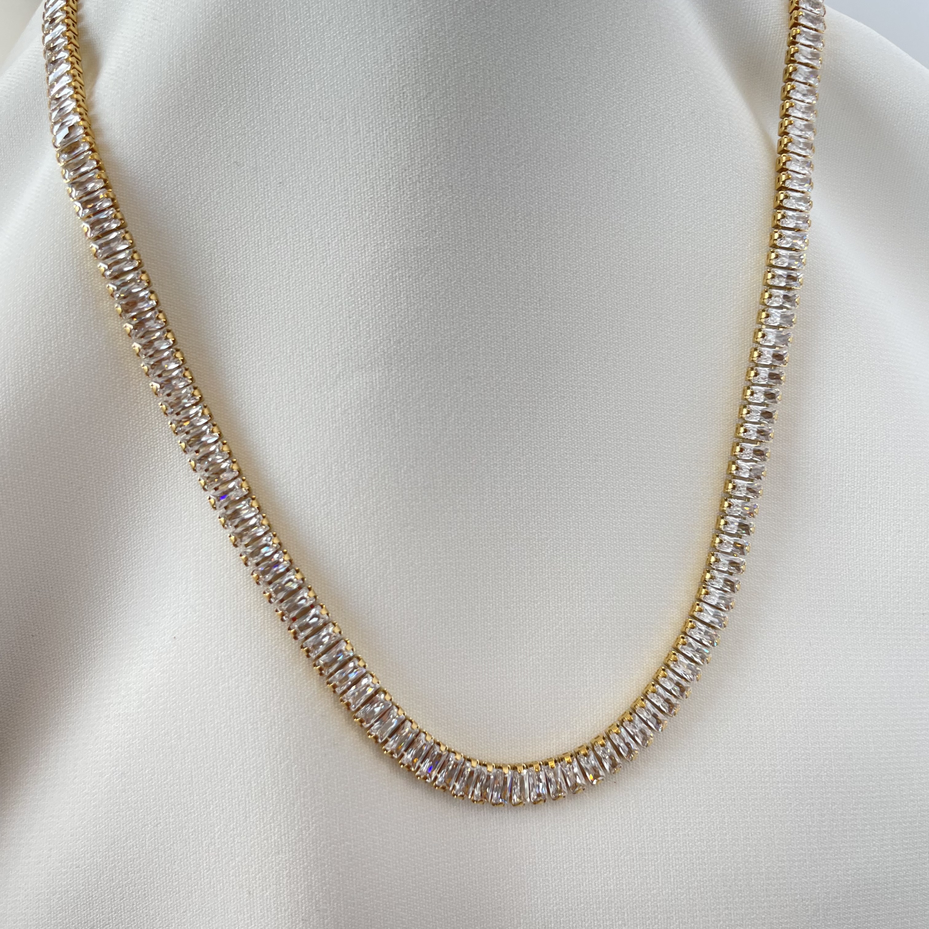 Uzunluğu 40 cm'dir. 5 cm uzatması bulunmaktadır. Antialerjiktir. Kullanım talimatlarına uyduğunuz sürece uzun süre kullanabilirsiniz. Tüm ürünlerimizde özel bir kaplama kullanılmaktadır ve sonuç olarak özel bir bakım gerektirir. Çizilmesini önlemek için, kutusunda veya klasik bir kesenin içinde saklayınız. Ellerinizi yıkamadan önce, yüzmeden önce ve parfümler, saç spreyleri, sabunlar veya losyonlar gibi vücut bakım ürünlerini kullanmadan önce aksesuarlarınızı çıkartınız, Bu işlemler hammaddeye zarar verebilir, kaplamanın ömrünü kısaltabilir ve parlaklık kaybına neden olabilir. Takılarınız tamamen giyindikten sonra takınız ve soyunmaya başlamadan önce çıkarınız. Su ile temasından kaçınınız. Sert darbelerden kaçınınız çünkü çizilmelere ve başka hasarlara neden olabilir.