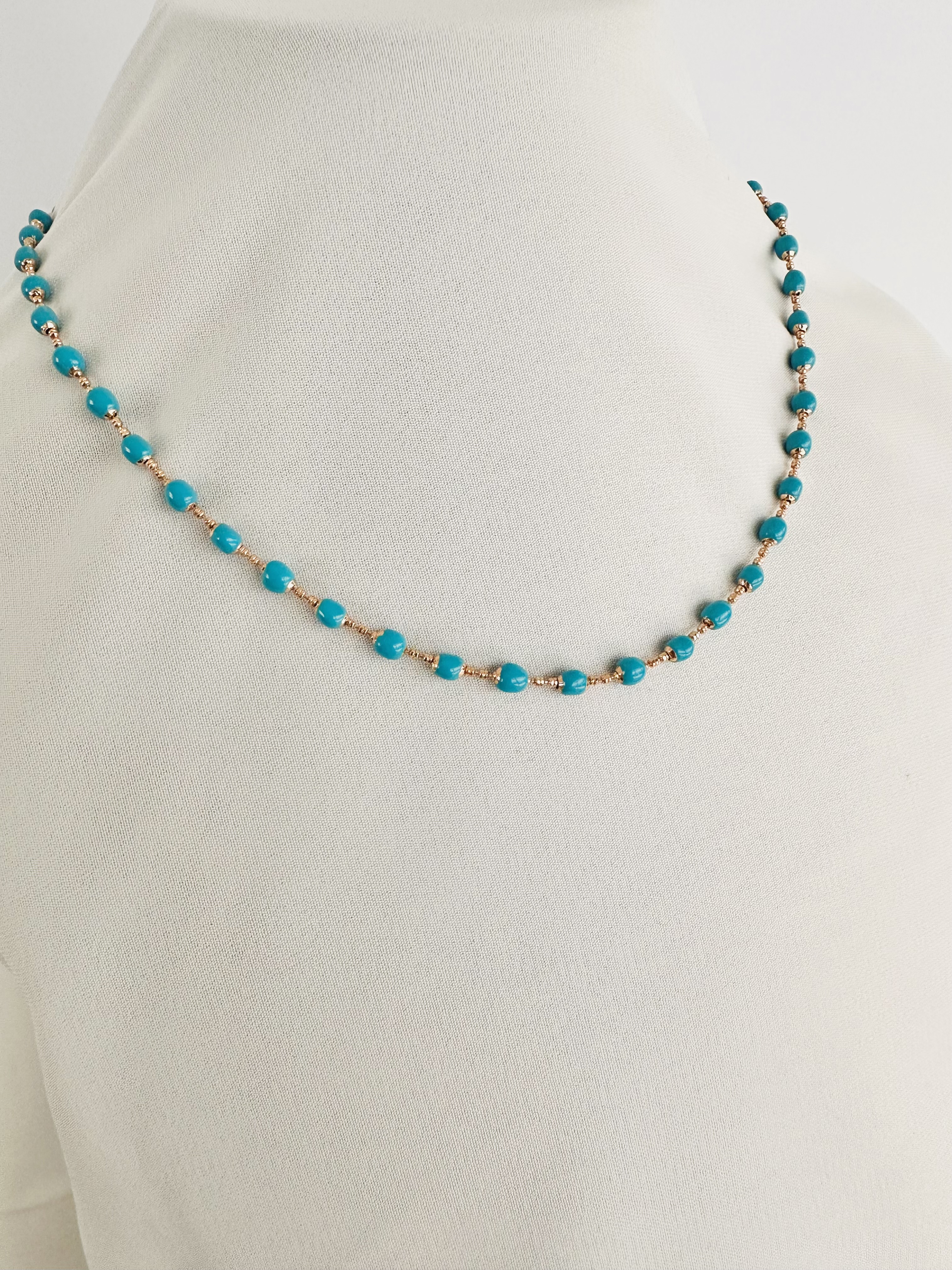 Uzunluğu 43 cm'dir. Antialerjiktir. Kullanım talimatlarına uyduğunuz sürece uzun süre kullanabilirsiniz. Tüm ürünlerimizde özel bir kaplama kullanılmaktadır ve sonuç olarak özel bir bakım gerektirir. Çizilmesini önlemek için, kutusunda veya klasik bir kesenin içinde saklayınız. Ellerinizi yıkamadan önce, yüzmeden önce ve parfümler, saç spreyleri, sabunlar veya losyonlar gibi vücut bakım ürünlerini kullanmadan önce aksesuarlarınızı çıkartınız, Bu işlemler hammaddeye zarar verebilir, kaplamanın ömrünü kısaltabilir ve parlaklık kaybına neden olabilir. Takılarınız tamamen giyindikten sonra takınız ve soyunmaya başlamadan önce çıkarınız. Su ile temasından kaçınınız. Sert darbelerden kaçınınız çünkü çizilmelere ve başka hasarlara neden olabilir.